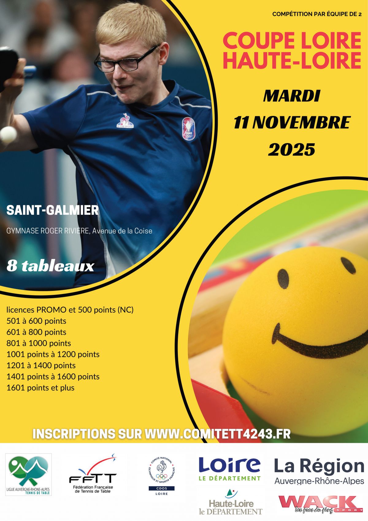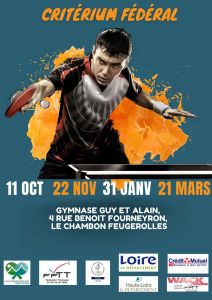 Compétitions All Compétition Default Title Date Random +Read More Championnat jeunes 25/26 Read More + +Read More Résultats du Championnat par équipes Read More + +Read More Coupe de la Loire 2025/2026 Read More + +Read More Criterium Fédéral 2025 /2026 Read More + +Read More TOURNOI DÉPARTEMENTAL VÉTÉRANS TOURNOI DÉPARTEMENTAL VÉTÉRANS Read More +